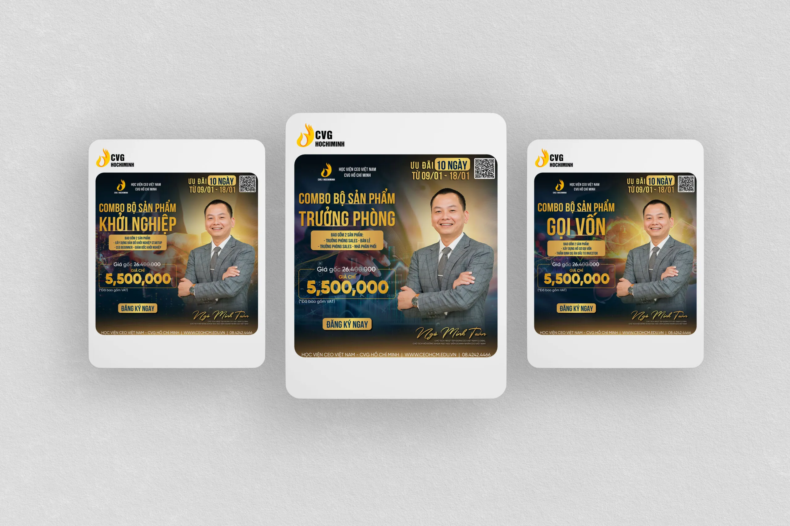 Đào tạo Thiết kế ấn phẩm truyền thông Thiết kế ấn phẩm truyền thông online, offline cho thương hiệu học viện đào tạo Doanh nhân CVG HCM
